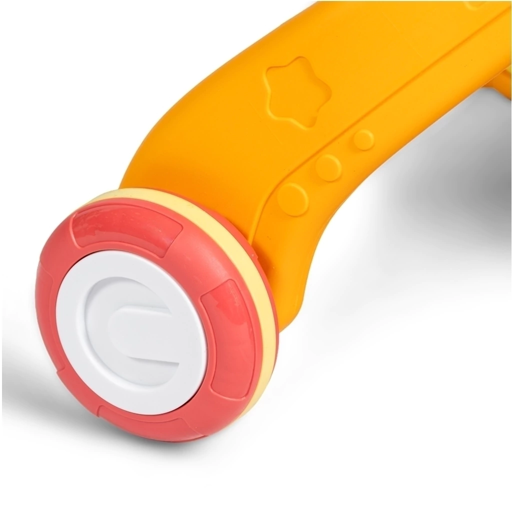Este caminador incluye un panel didáctico con engranajes giratorios, formas para encastrar, un librito incorporado y un avión desmontable con luz y sonido (funciona con baterías AA, no incluidas), que estimulan el desarrollo sensorial y la motricidad.