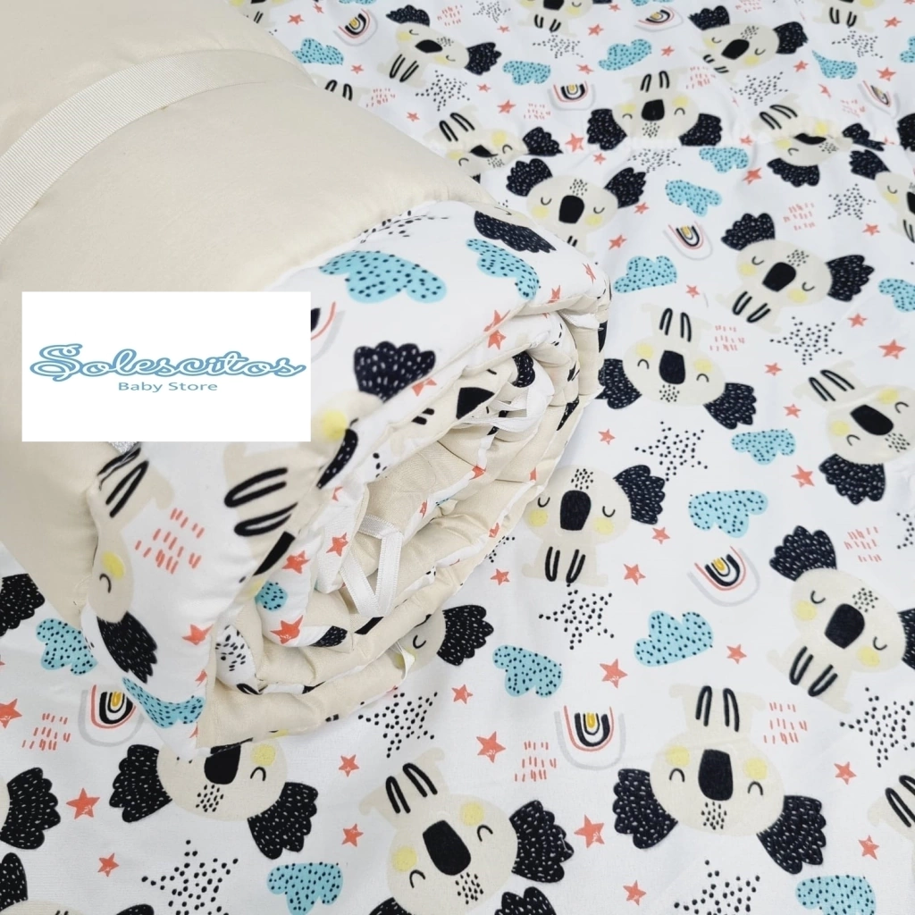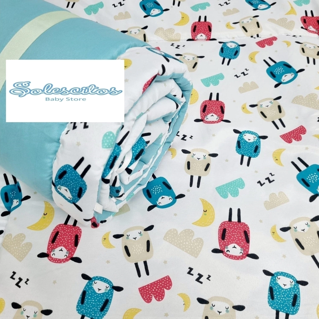 Confeccionado en 100% algodón hipoalergénico, este acolchado asegura un descanso placentero y seguro, sin bordados ni apliques que puedan irritar la piel delicada del pequeño.